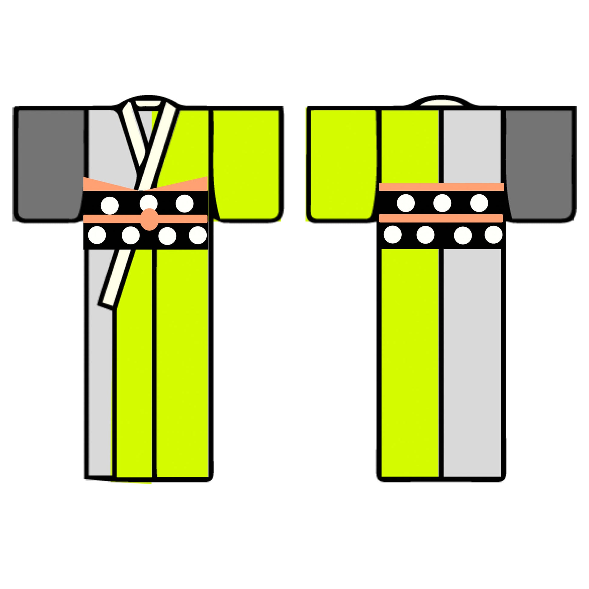 左右非対称なカラーリングが、個性を際立たせ、どんな場面でも注目を集めること間違いなし。帯との組み合わせでよりスタイリッシュな印象を与えます。